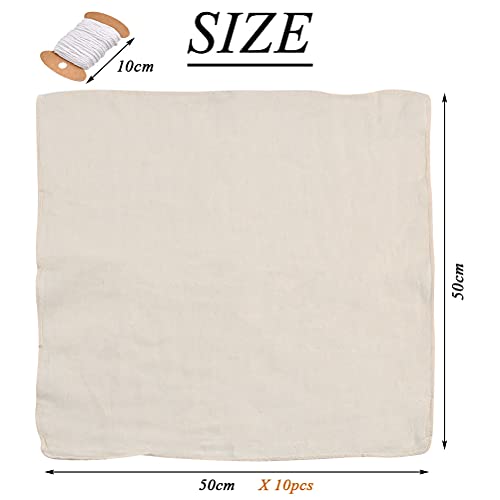 Passeerdoek, kaasdoek, 10 stuks vierkant, filterdoek, 50 x 50 cm, zachte katoenen doek, kaart met kooktouw, linnen doek…