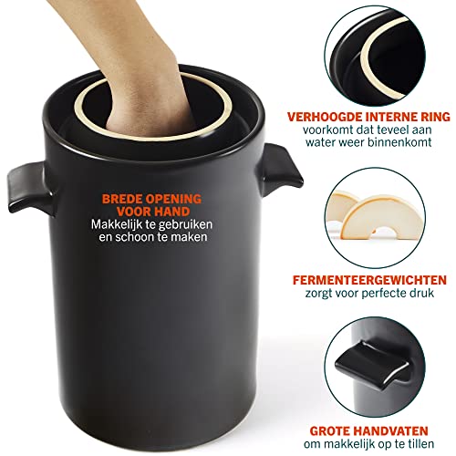 HomeBuddy fermentatiepot met gewichten – 3,8 liter Keramische zuurkoolpot met fermentatiegewichten en deksel – werkt…
