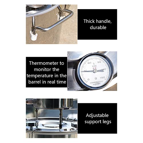 Veelzijdig gebruik: Ideaal voor zowel beginners als gevorderden, voor het distilleren van fruitwijn, gedestilleerd water, gezuiverd water, het distilleren van brandewijn en het verfijnen van geneeskrachtige plantenextracten. De verdikte bodem zorgt voor een verscheidenheid aan verwarmingsmethoden, waaronder gaskookplaten, keramische kookplaten, kookplaten met elektrische spoel en meer.